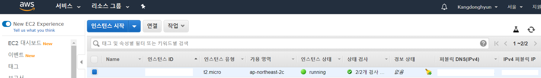 잠시 사용하지 않는경우 꺼두는것을 추천하며, 인스턴스를 끄는 방법은 인스턴스 대상을