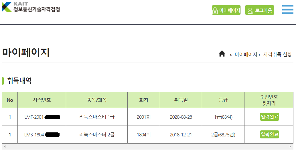 즉, 다른 자격증은 유효기간을 가지는반면에 리눅스마스터는 유효기간이 없다는게 큰 장점이다.