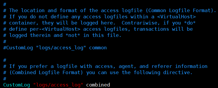 restart 후 access.log는 "combined" 이름으로 정의된 형식으로 저장된다.