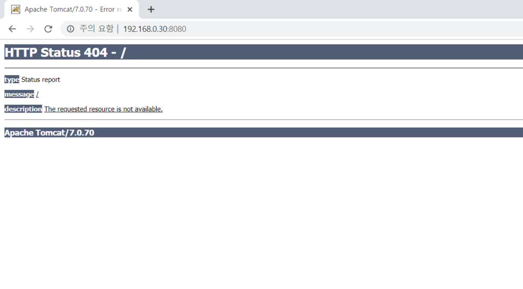 보통 web.xml 파일안에 404 error 페이지가 설정되어있지 않다면 아래사진과 같은 화면을 보게된다