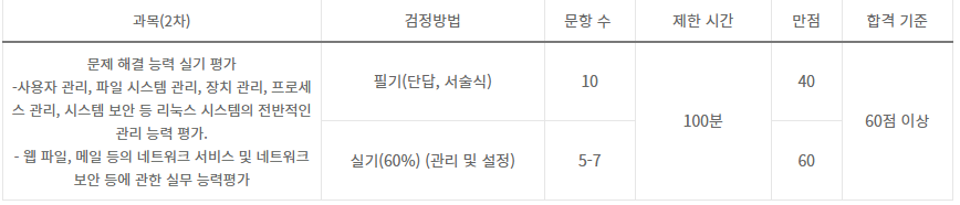 7. 1급 2차의 경우 리눅스마스터 1급 합격 기준(위에 합격 기준 적어놈)